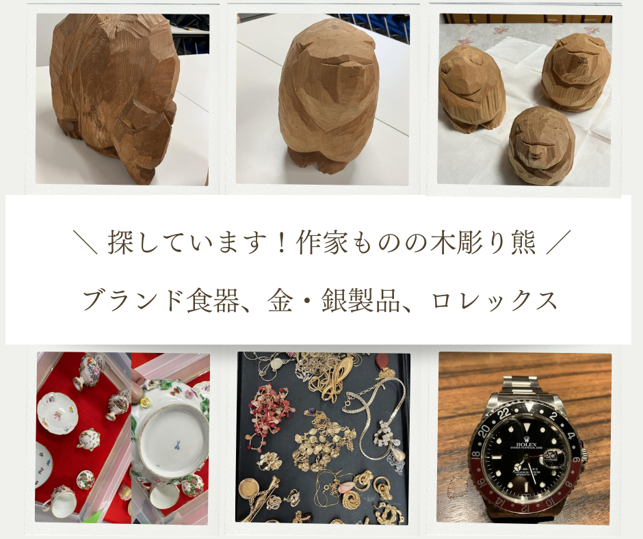 特に、ブランド時計やバッグ、金・銀製品、洋食器、作家モノの木彫りの熊やアイヌ民具・装飾品などを探しています。また、金の買取価格が高騰しており、金を売るなら今がチャンスかもしれません!