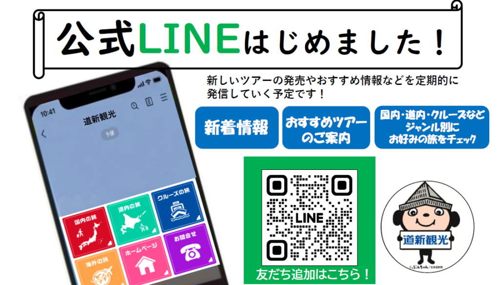 道新観光の公式LINEがスタートしました! 最新情報やおすすめツアーをサクッとチェックできるので、